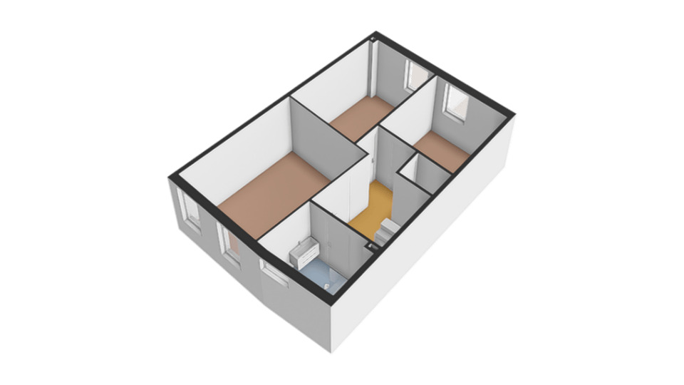 De master bedroom ligt aan de voorzijde van het huis. Aan de achterzijde bevinden zich slaapkamer 2 (links) en slaapkamer 3 (rechts). Alle drie de kamers zijn voorzien van een laminaatvloer en hebben elektrische rolluiken.