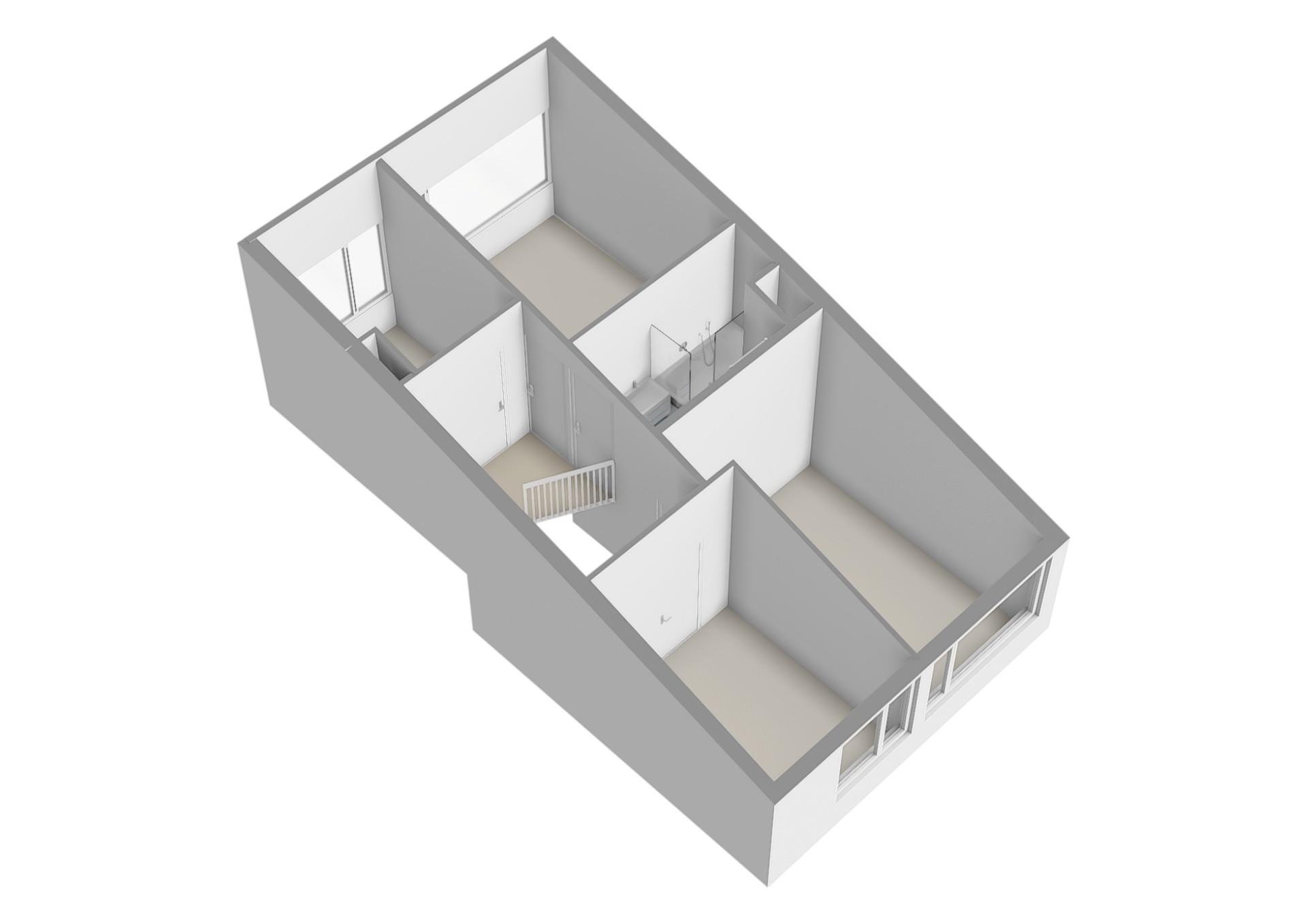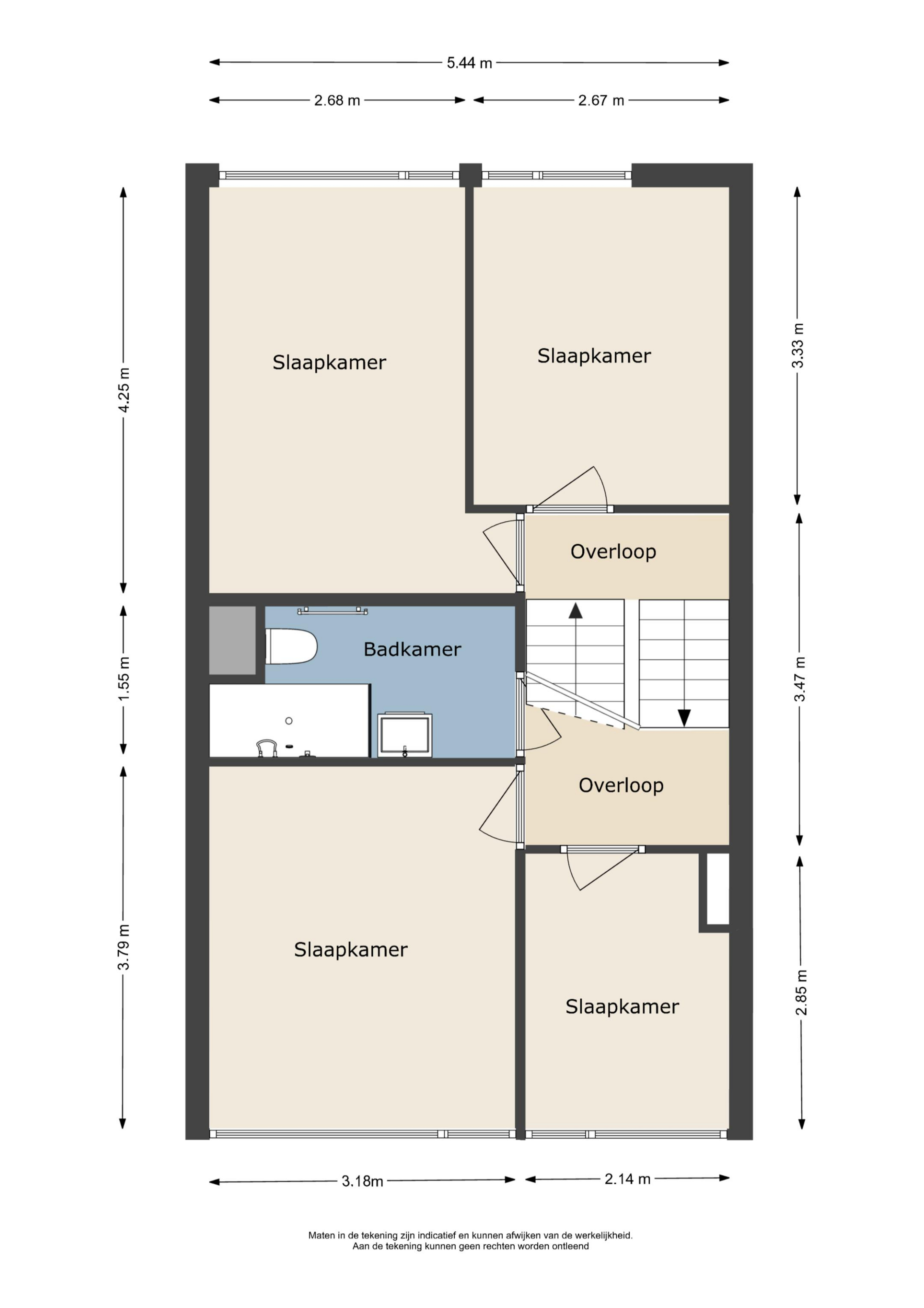 Tweede verdieping – Overloop, twee slaapkamers en badkamer