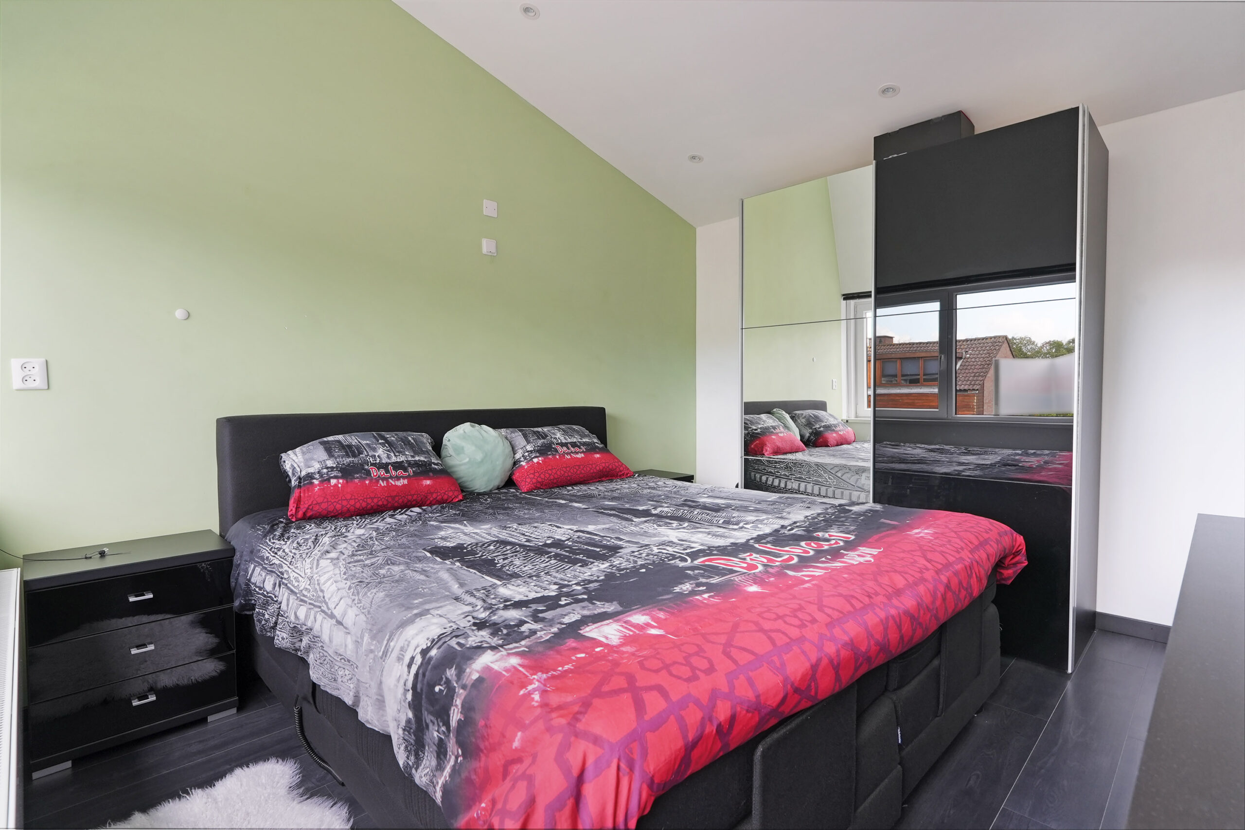Slaapkamer 1 is een fijne kamer met twee draaikiepramen in kunststof kozijnen, waardoor er veel licht binnenkomt. De spotjes in het plafond geven de ruimte een moderne sfeer.
