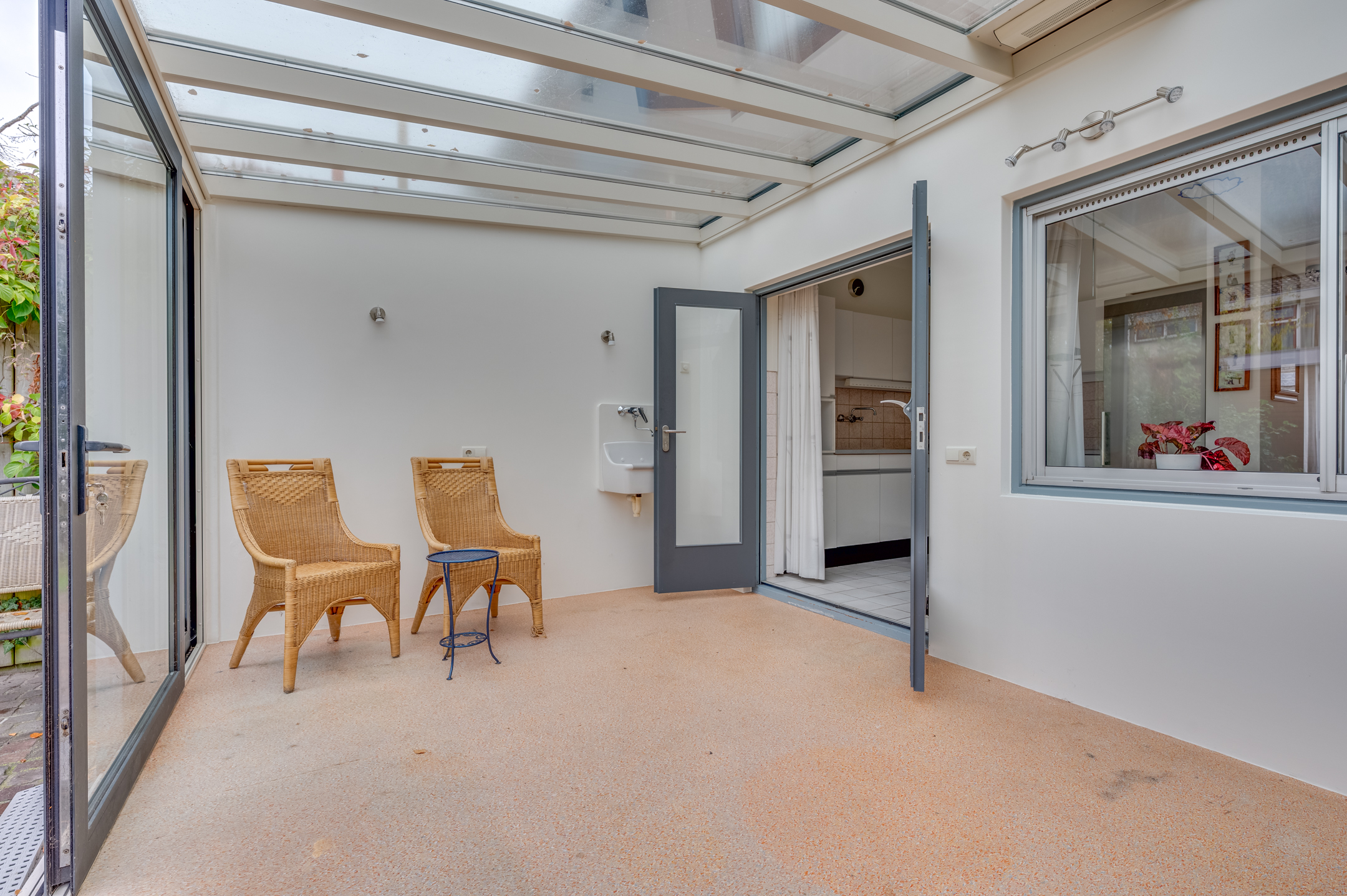 De serre is een heerlijke plek om te ontspannen en is voorzien van airconditioning. Vanuit hier stap je zo de zonnige tuin op het zuidwesten in. Ook is er een dakterras, waar je niet alleen lekker kunt zitten, bijvoorbeeld voor een kopje koffie in de ochtendzon, maar ook handig de was kunt laten drogen.
