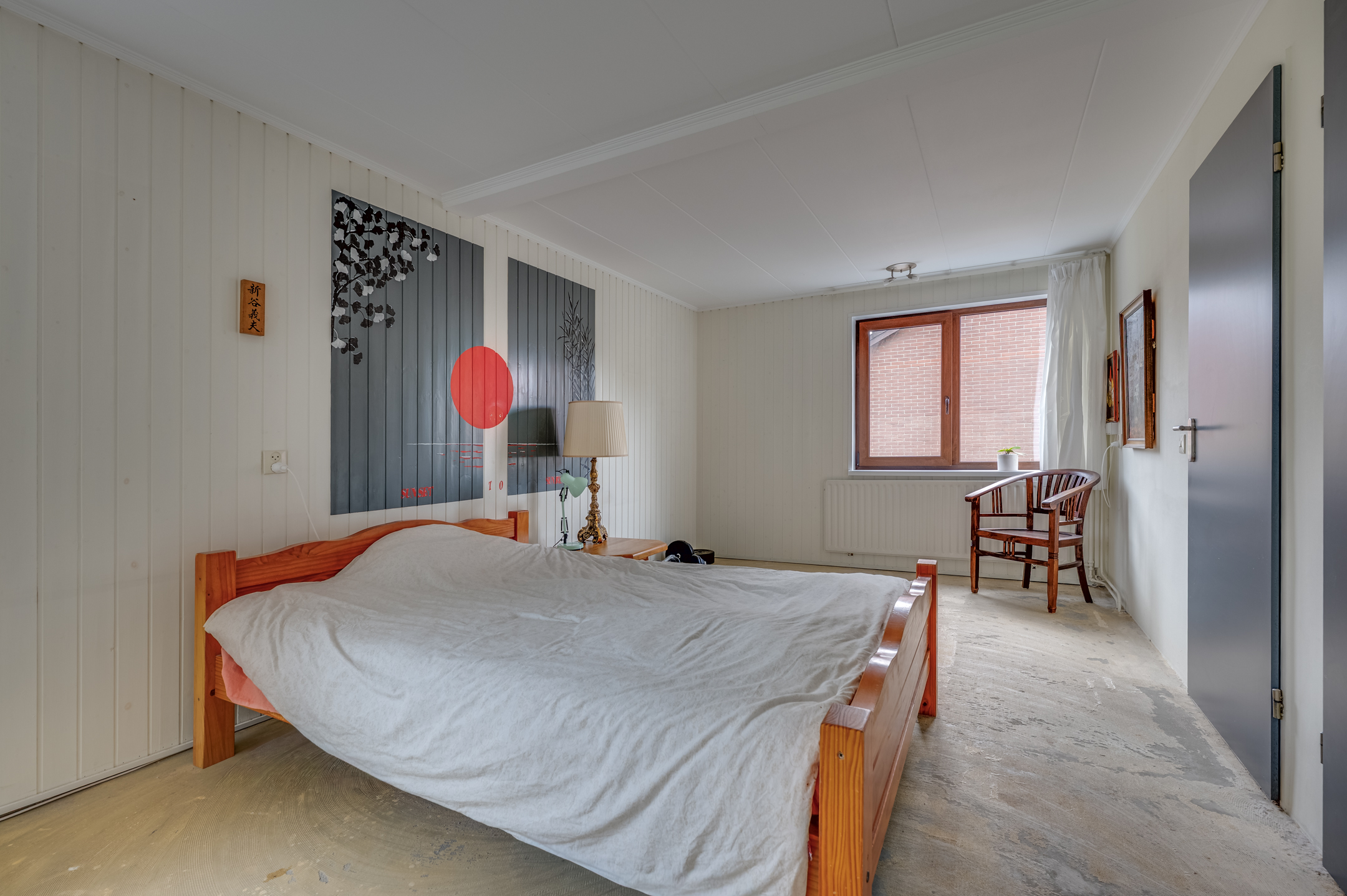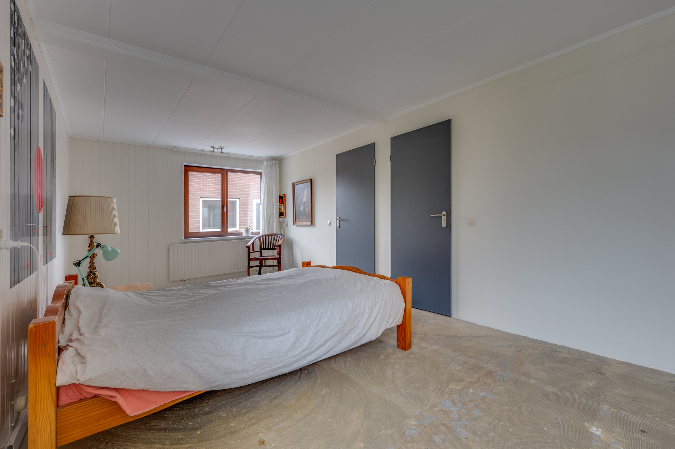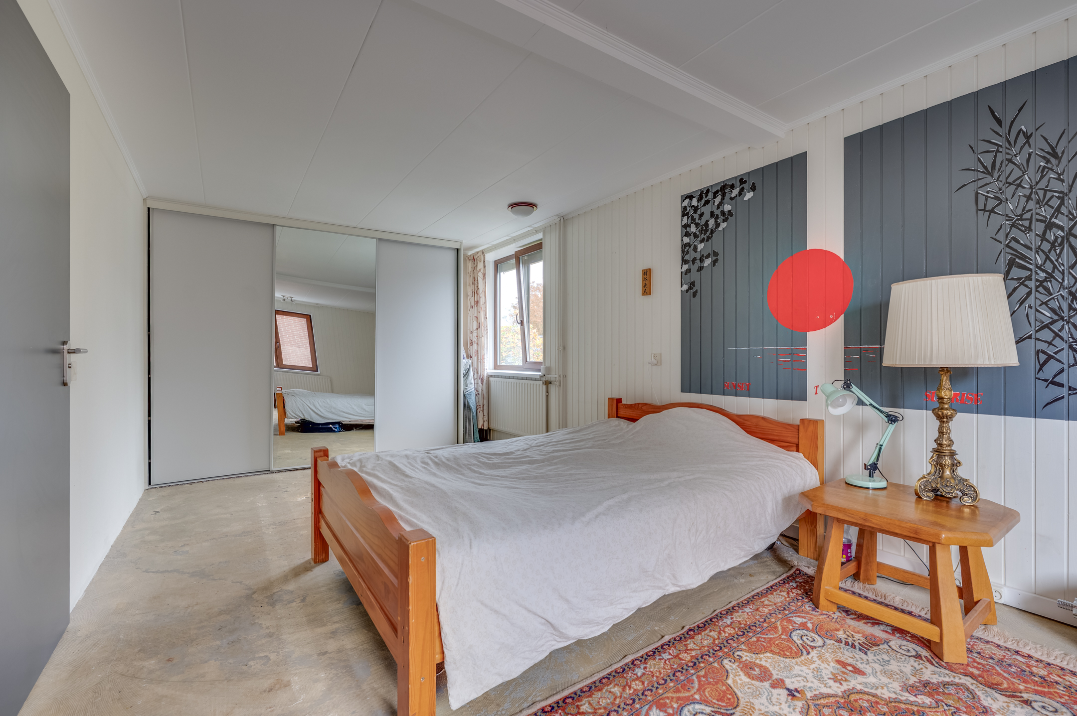 De grote slaapkamer ligt aan de voorzijde van de woning. Deze kamer is ruim genoeg om eventueel te splitsen in twee slaapkamers. Er is een vaste kast aanwezig en je hebt direct toegang tot de badkamer vanuit deze kamer.