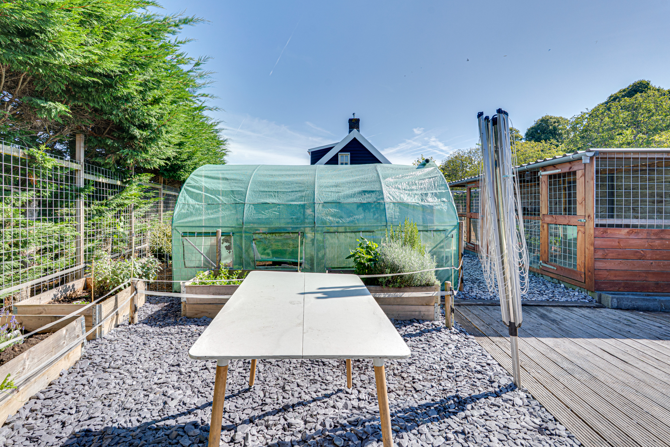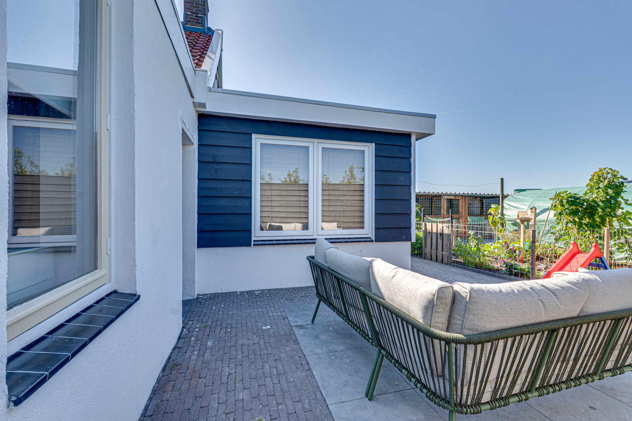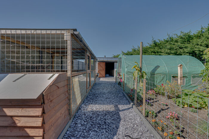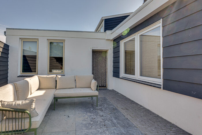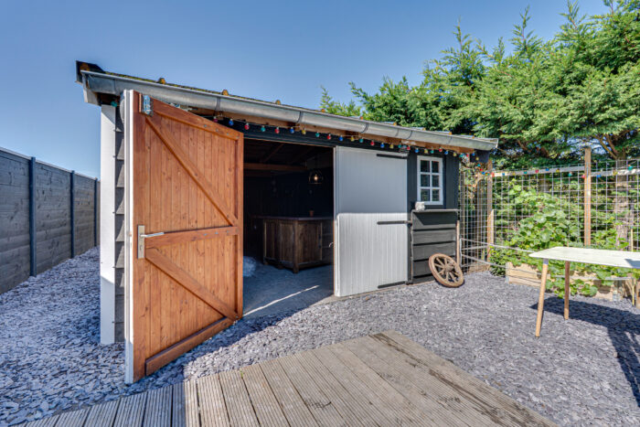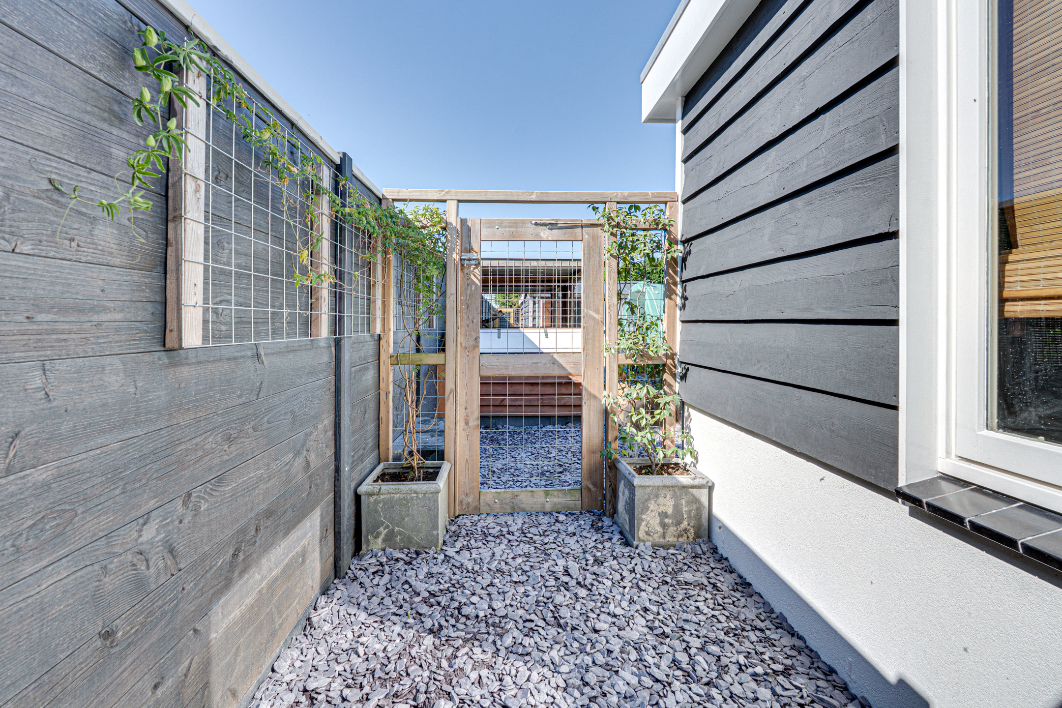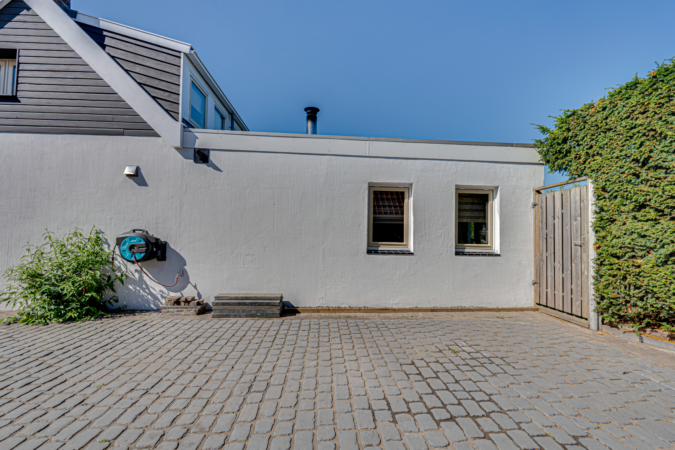De achtertuin is een echt pluspunt. Royale afmetingen, en gelegen op het zuidwesten. Hier kun je de hele dag van de zon profiteren. Dankzij de verschillende terrassen is er altijd een fijn plekje om te zitten. Verder is er een moestuin en een kippenren. Achter in de tuin staat een vrijstaand houten tuinhuis voorzien van een gezellige hottub. “Dat is toch geniete”. Het tuinhuis biedt vele mogelijkheden. Het is bijvoorbeeld in te richten met een zithoek, buitenkeuken of zelfs een bar. Achter het tuinhuis ligt bovendien nog een extra stuk tuin dat multifunctioneel te gebruiken is.