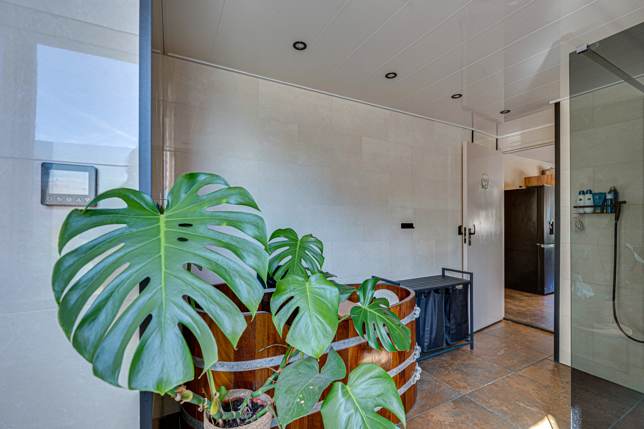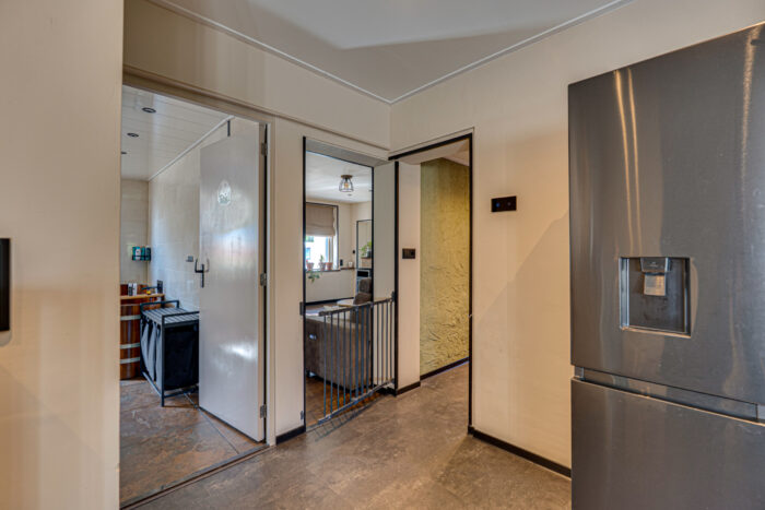 Daarnaast is er een praktische wasruimte met aansluitingen voor de wasmachine en droger en de opstelling van de cv-ketel. Via de achterdeur in de centrale hal loop je rechtstreeks de tuin in.