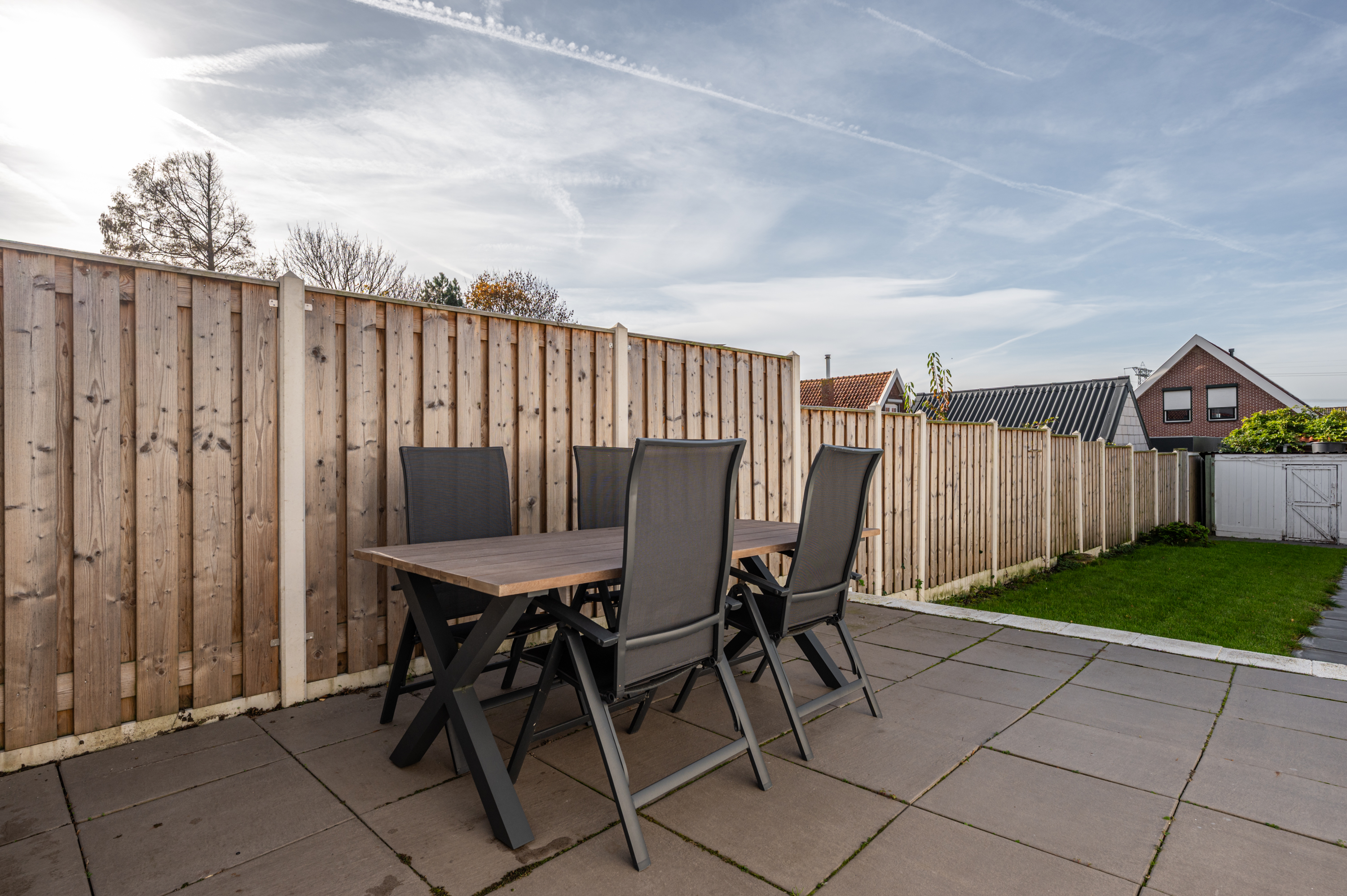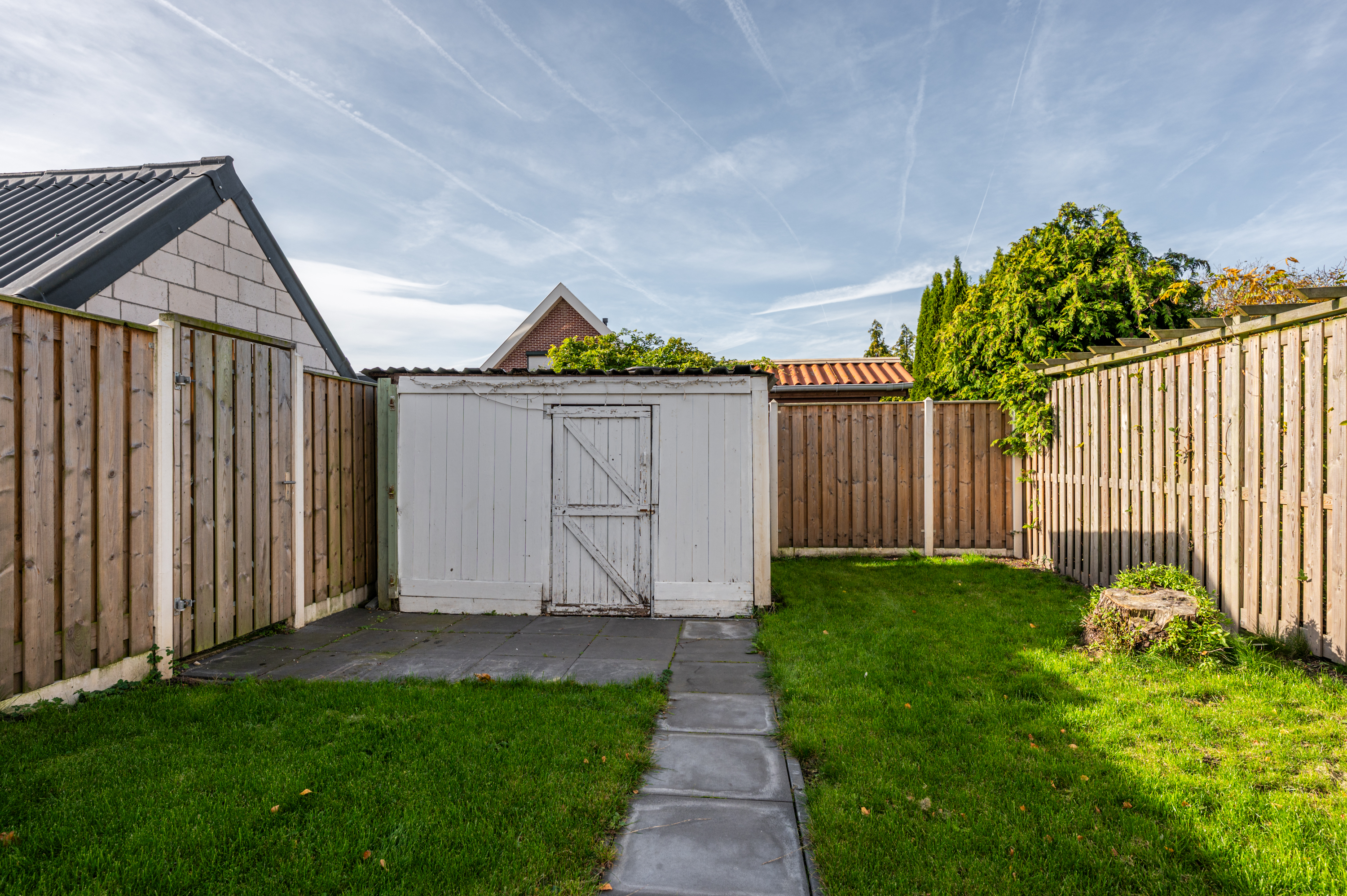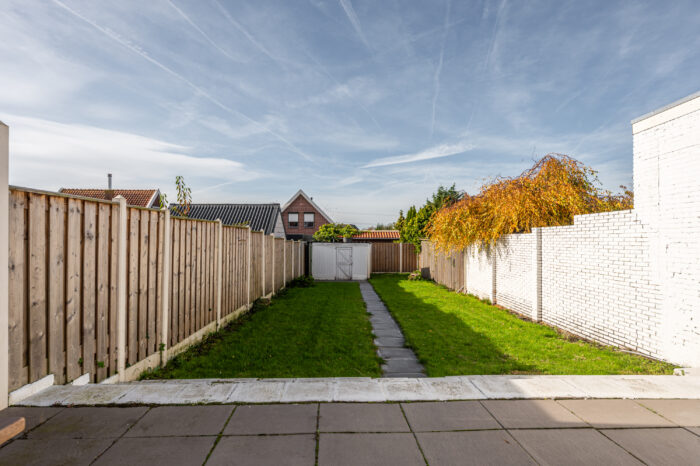 De diepe achtertuin ligt op het zuidwesten, waardoor je veel zon hebt. Er is een terras om lekker buiten te zitten en een gazon voor extra groen. Via een tegelpad loop je naar het houten schuurtje achter in de tuin. De tuin is omheind met een schutting en een muur, waardoor je veel privacy hebt. Via een poort is er een achterom. Ook is er een buitenkraan aanwezig, handig voor het sproeien van de tuin of het schoonmaken.